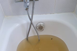 Le bouchon fatal : eau brune dans ma baignoire.